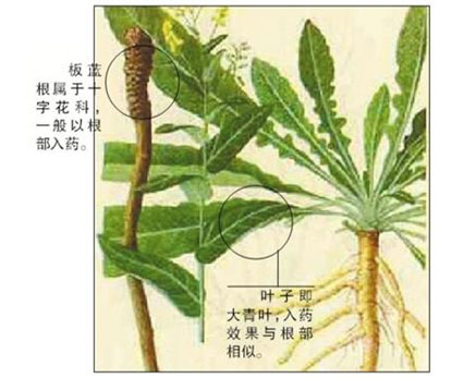 菘蓝和草大青的根;或马蓝的根茎及根。