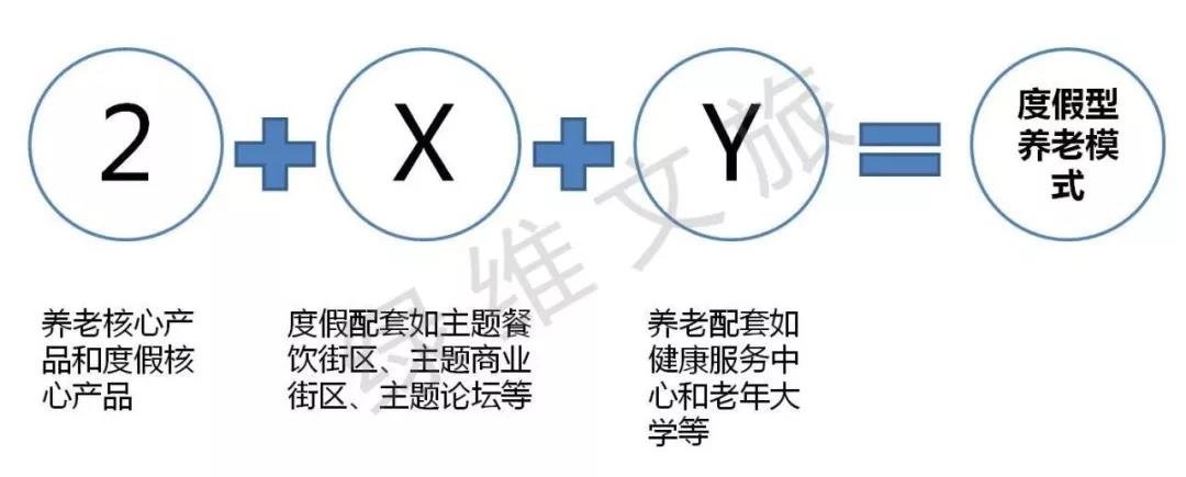 将享老度假总结为“2+X+Y”模式。取养老和度假二者的核心部分,并通过专业化打造、产业化融合使传统的养老社区进行了突破性的变革——让配套成为“主套”、让配套自我造血、让消费拓展延伸、让商业模式优化、让开发风险降低,进而形成一个高尚生活空间、一个高端生活区、一个文化聚集区、一个局部的商业聚集区。