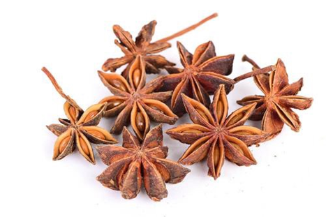 5.八角茴香 木兰科植物八角茴香的干燥成熟果实 【性味与归经】辛,温。归肝、肾、脾、胃经。 【功能与主治】温阳散寒,理气止痛。用于寒疝腹痛,肾虚腰痛,胃寒呕吐,脘腹冷痛。 【用法与用量】3~6g。
