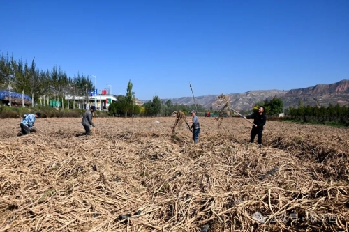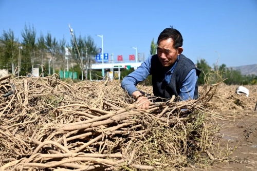 深秋时节,甘肃省陇西县53万亩中药材喜获丰收。在该县首阳镇万亩中药材绿色标准化种植基地,各类先进的中药材收获机械与药农协同作业,一根根黄芪、党参、防风等中药材破土而出,群众忙着采挖、分拣、装车,与不远处来自全国各地正在卸货、晾晒的成千上万吨黄芪一同勾勒出一幅绚丽的秋日丰收图景。