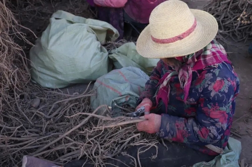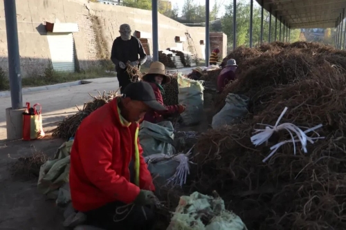 甘肃合百草有限公司黄芪收购员 乔小娥:“今年采购的黄芪比去年的个头大、品质好,黄芪初加工需要大量的人工,我们提供了更多的就业机会,让当地农民在家门口就能实现增收。”