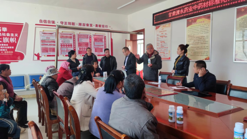 图为甘肃省渭水源药业有限公司线下开展“倒春寒”预防措施培训现场