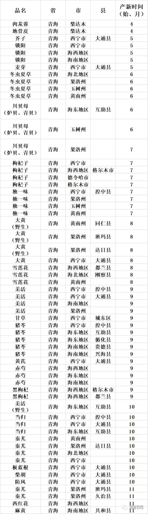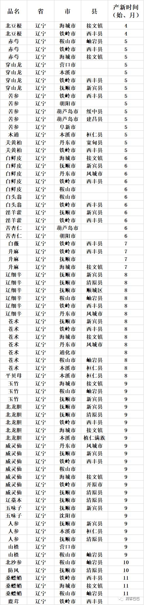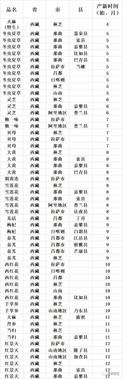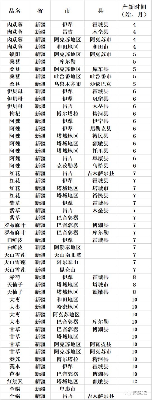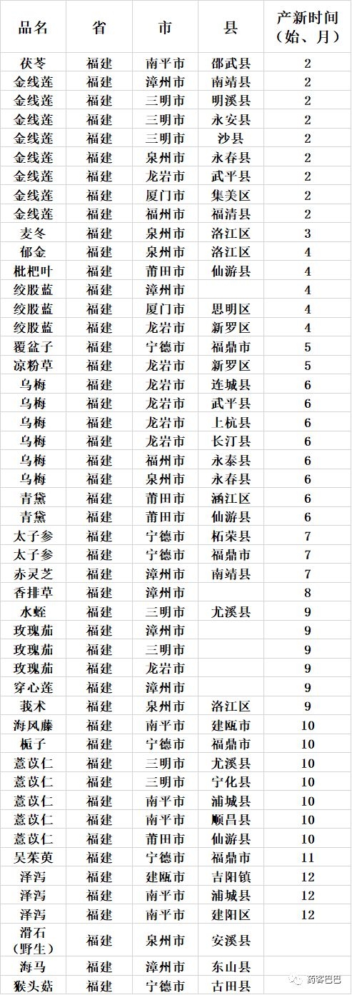 收藏 | 超全中药材产地、产新时间表