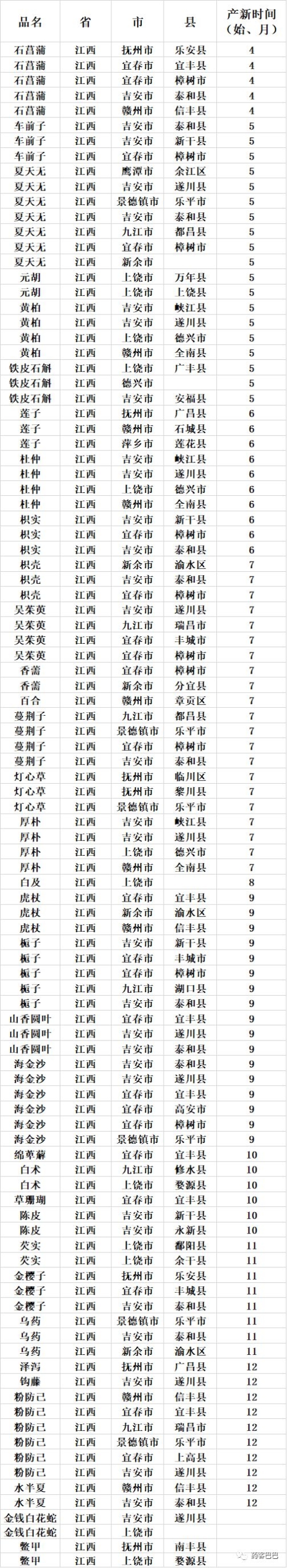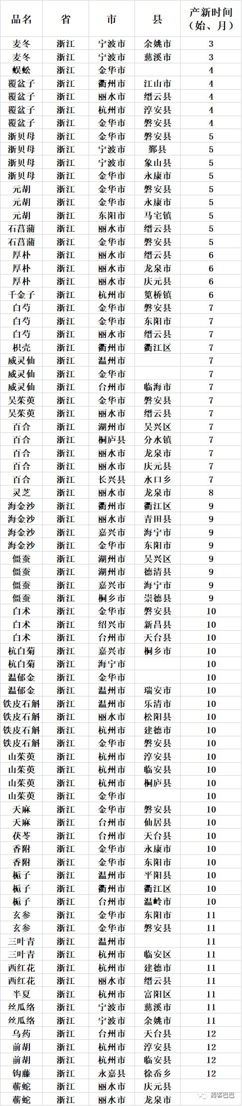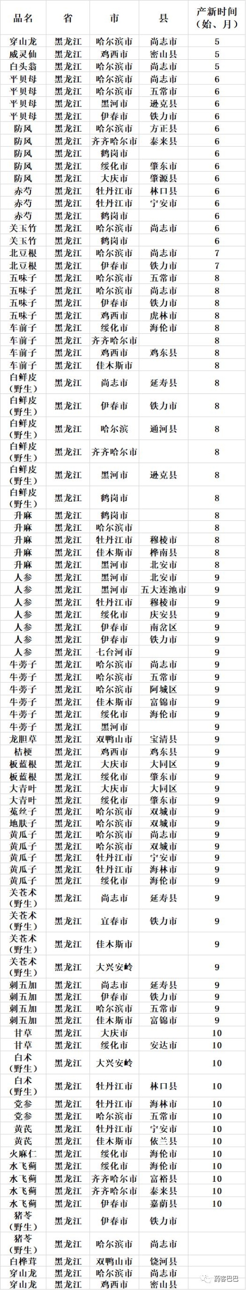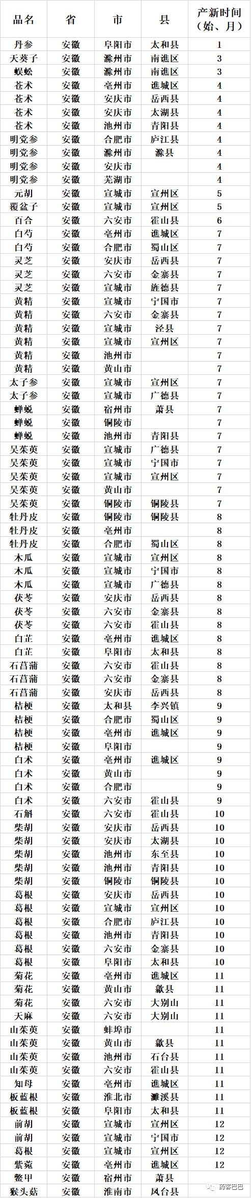 收藏 | 超全中药材产地、产新时间表
