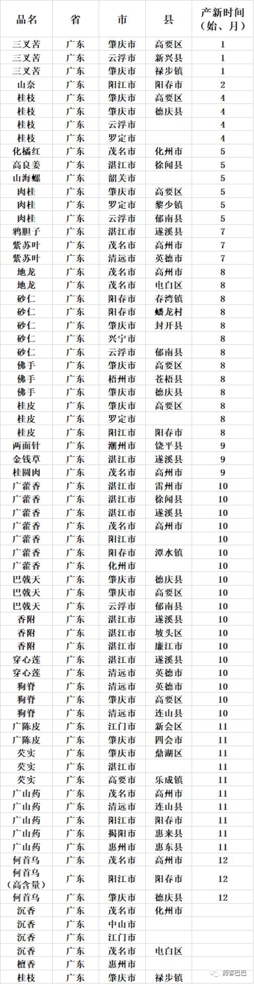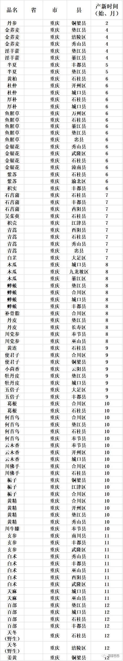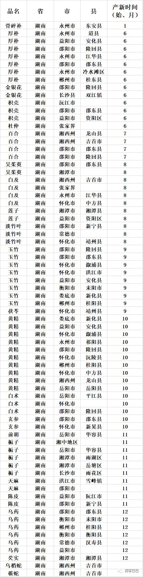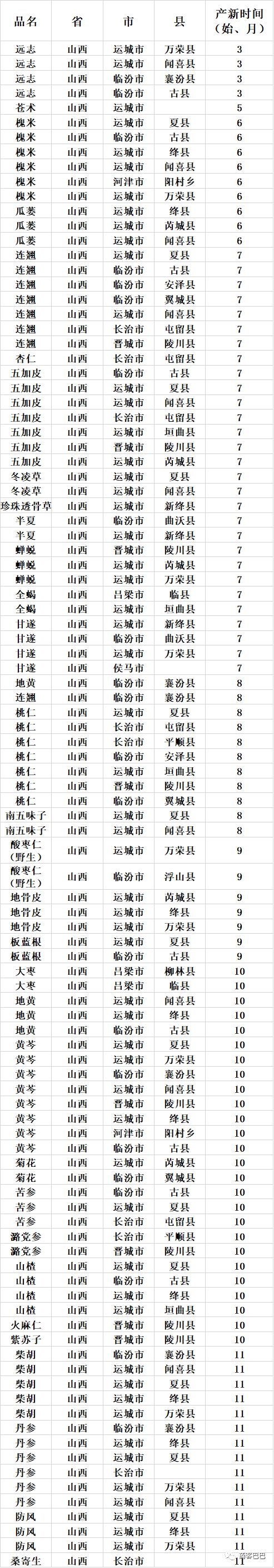 收藏 | 超全中药材产地、产新时间表