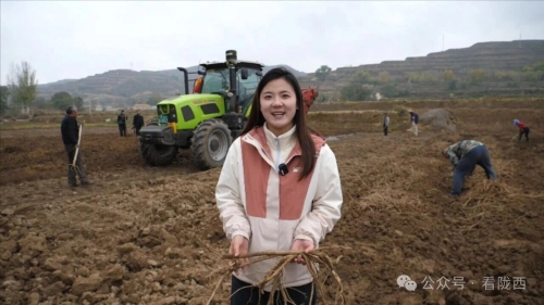 陇西融媒记者余静:我现在所在的位置是陇西县首阳镇万亩中药材种植基地,药农们正趁着晴好天气抢收中药材,全力加快采收进度。筛药机轰鸣着深耕沃土,一根根饱满的黄芪破土而出。这片孕育道地陇药的厚土,正因这场繁忙的采收,涌动着勃勃生机。