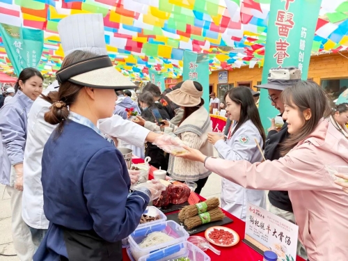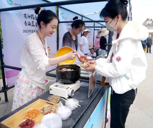 义诊台前排满了前来就诊的市民朋友。 夜幕降临时,中(藏)医药文化夜市点亮灯火。雪豹玩偶穿梭其间,与亲子家庭互动拍照。药材识别猜谜摊位前,一位老人指着标本笃定地说:“这是当归,我老伴常用它煲汤补血。”答对后,他开心地领取了中药香囊制作材料包。在香囊制作区,家长与孩子共同填充艾叶、薄荷。“原来香囊不仅好闻,还能驱蚊防疫!”初中生王雨彤举着刚缝好的香囊,药香从彩色布袋中溢出。 县域显特色: 文旅融合激活基层健康动能 在西宁主会场之外,青海各地的区县以“中医药+”模式打造特色惠民活动,让中(藏)医药文化深度融入乡村振兴与基层健康服务。 5月23日,大通县中医院联合向化藏族乡举办“健康乡村・药膳之乡”活动,60余种药膳作品在创意竞赛中亮相。“这道‘黄芪炖羊肉’用的是我们当地种植的黄芪,能补气固表。”参赛厨师边展示菜品边讲解。竞赛设置的“村民观摩学习区”里,村民李桂兰认真记录着专家的烹饪要点:“学会后我也能在村里开家药膳馆了。”