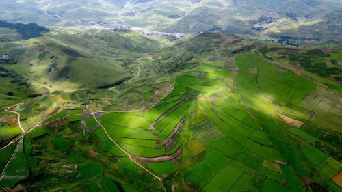 岷县蒲麻镇万亩中药材种植基地。(无人机航拍 牛小栋摄)