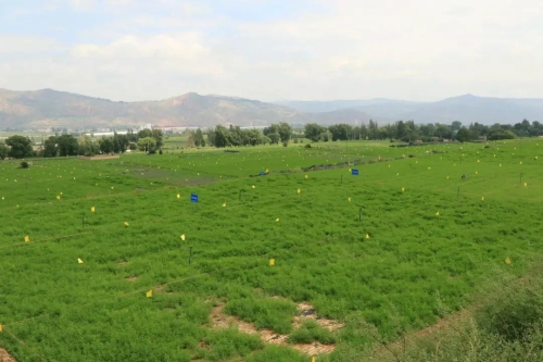 走进陇西县首阳万亩中药材种植基地,20亩地块被划分为26个“微型实验室”,黄色诱虫板与翠绿的黄芪苗相映成趣。
